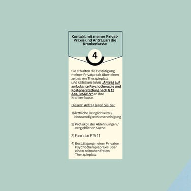 4) Sie erhalten die Bestätigung meiner Privatpraxis über einen zeitnahen Therapieplatz und schicken einen „Antrag auf ambulante Psychotherapie und Kostenerstattung nach § 13 Abs. 3 SGB V“ an Ihre Krankenkasse.
